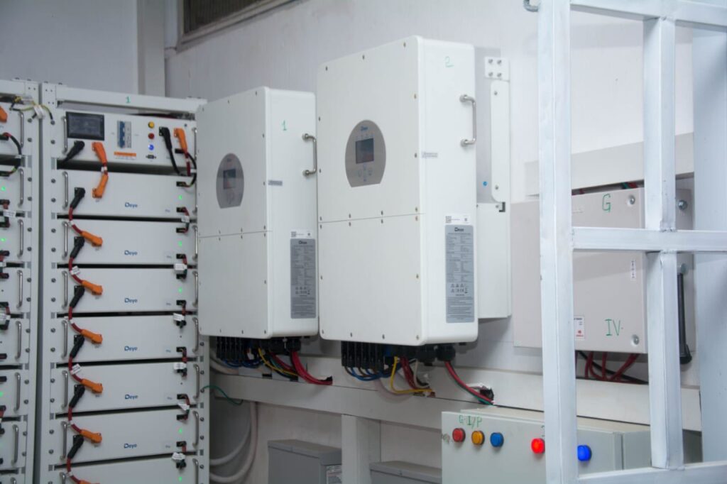 Power generated by the solar panels is routed through two inverters, each rated at 30 kVA. These inverters are synchronized to deliver a combined output of 60 kVA, converting direct current (DC) electricity into alternating current (AC) suitable for hospital operations. In total, the system constitutes a fully functional 60 kVA solar power installation built to deliver reliable and sustainable energy.